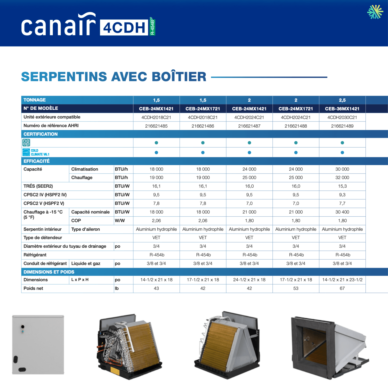 Thermopompe Centrale "ADD-ON" CANAIR 4CDH R-454B | 2.5T - 30000 BTU - Serpentins AVEC Boîtier