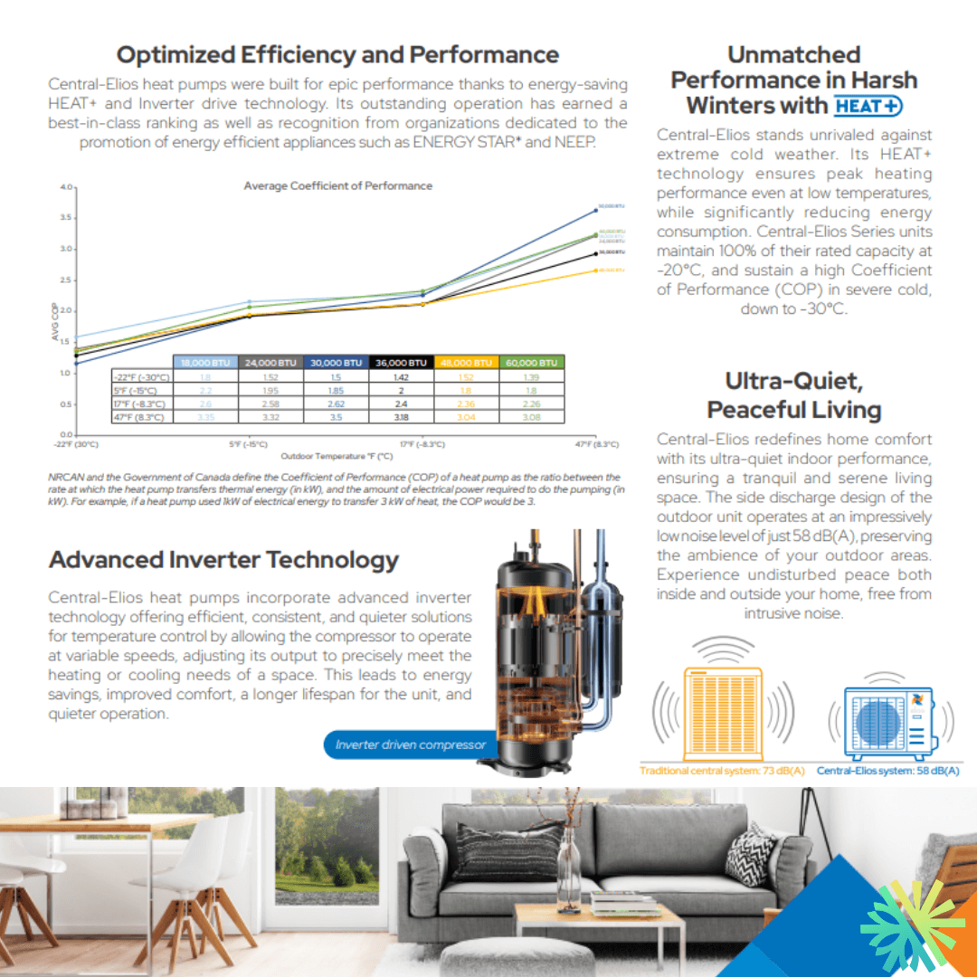 Dans le contexte climatique du Québec, la performance en chauffage est le critère numéro un. Trop de systèmes centraux affichent de bons chiffres sur papier, mais peinent dès que la température descend sous -15 °C. C’est précisément sur ce point que le système ELIOS Central-Elios se démarque.