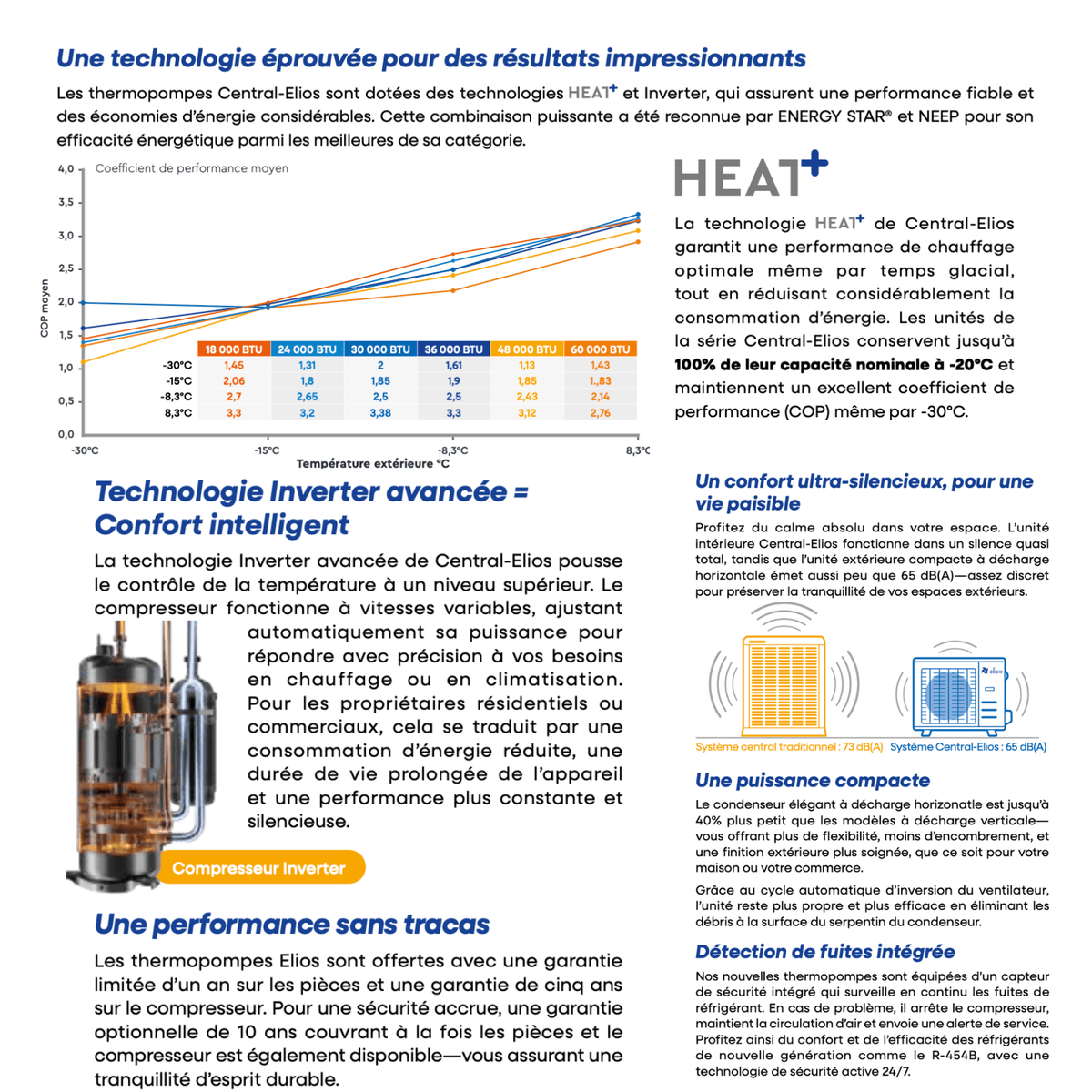 La thermopompe Elios ADD-ON 30 000 BTU affiche des valeurs de rendement qui en font une solution centrale sérieuse :