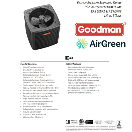 Thermopompe Centrale Goodman GLZS4B R32 | 3.5 Tonnes | Montréal, Laval, Longueuil, Rive Sud & Rive Nord