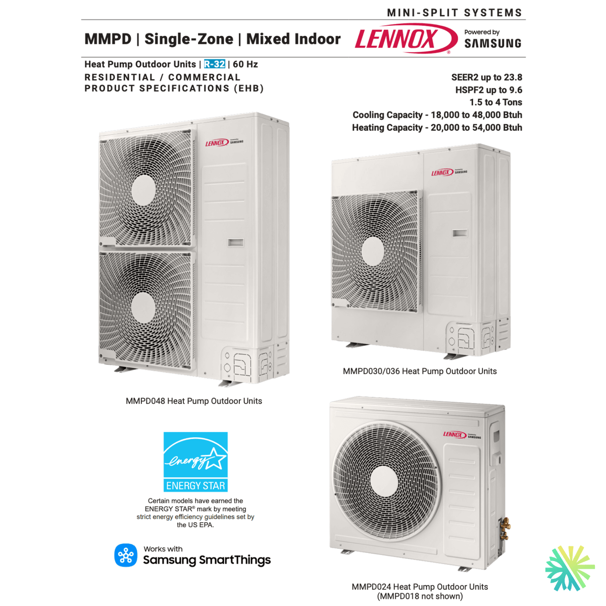 Thermopompe Centrale LENNOX MMPD | 24000 BTU | Pièces par Samsung
