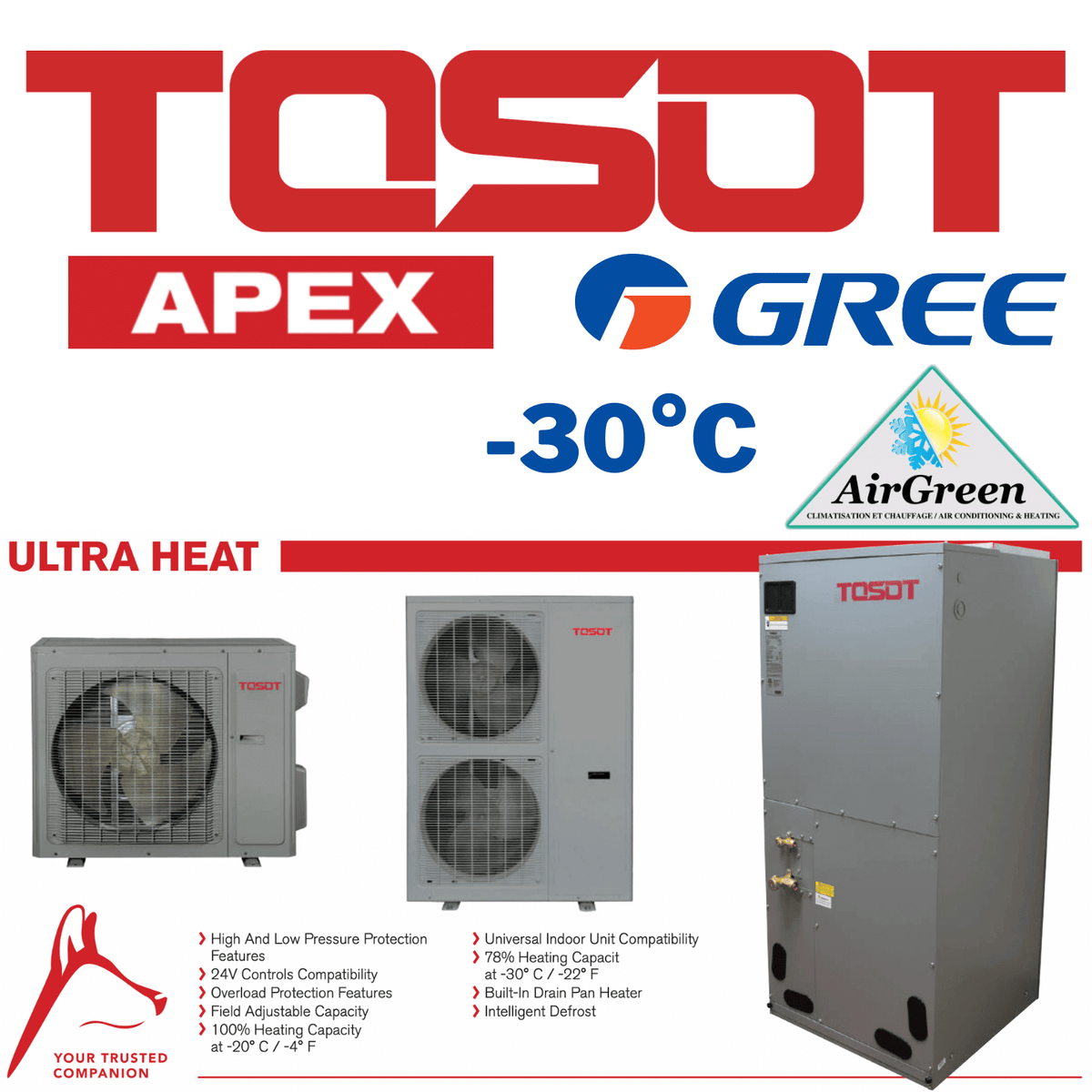 Installation et distribution de la thermopompe centrale Tosot APEX de 4 tonnes partout dans le Grand Montréal.