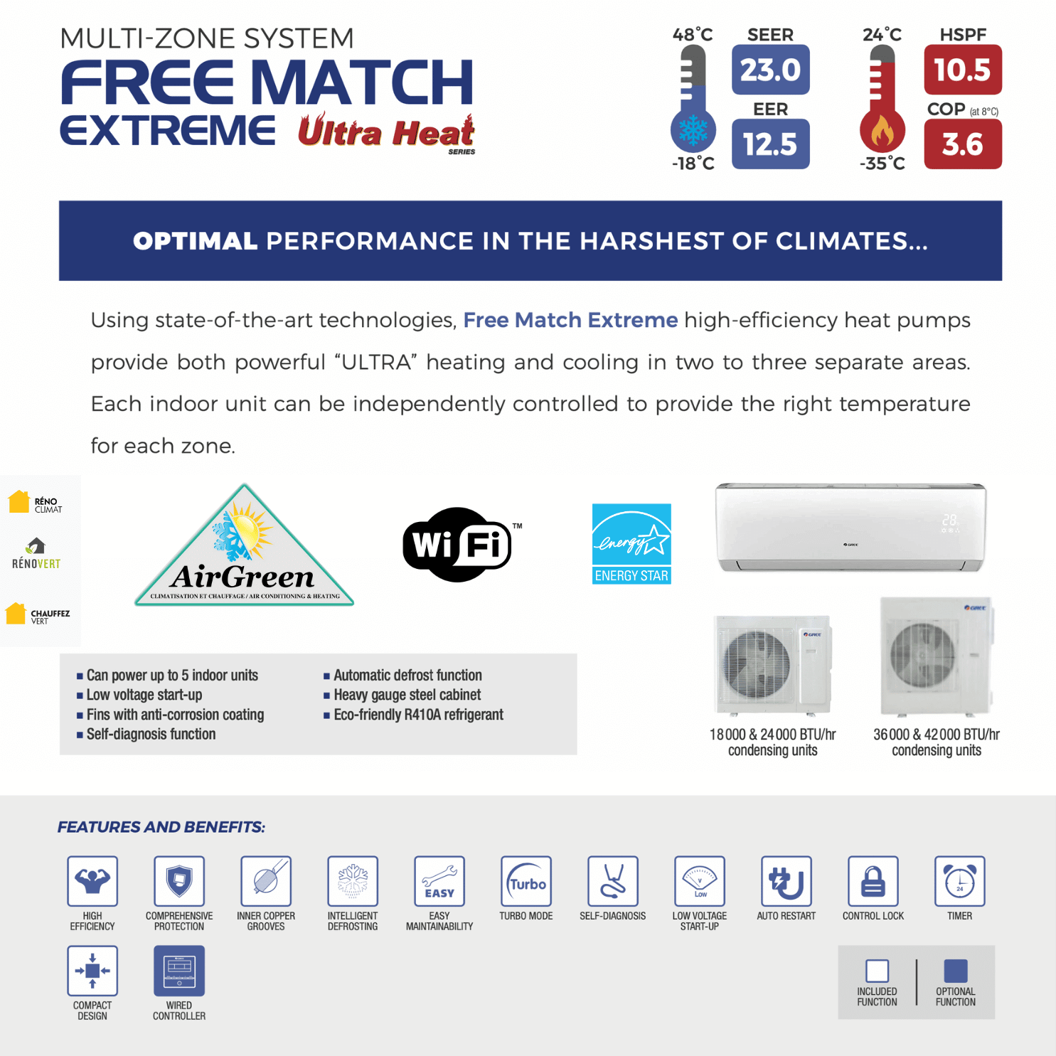 Thermopompe Double Zone Gree Free Match Extreme Compresseur 42 000 BTU Montréal