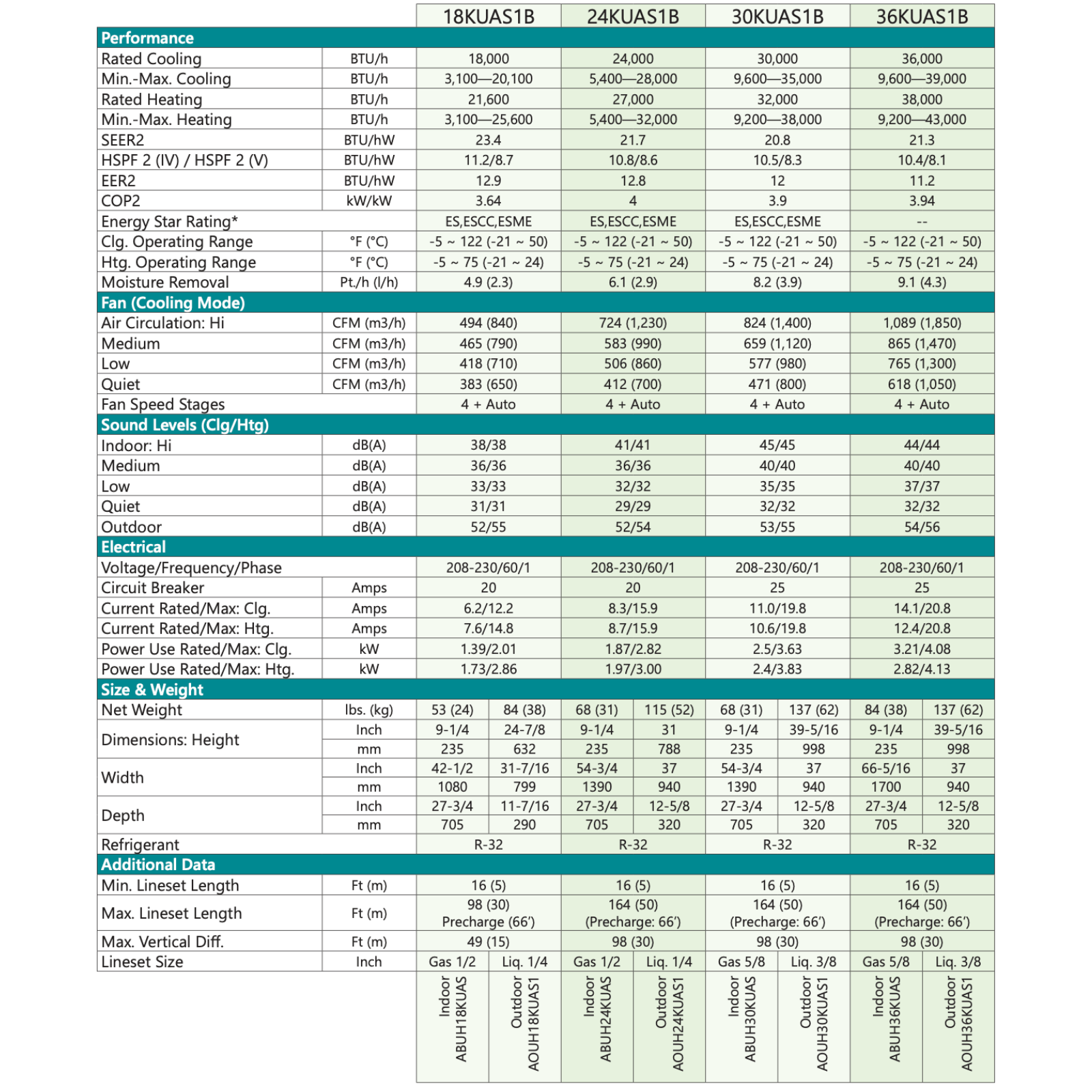 La FUJITSU Centauri 36 000 BTU affiche des indices de performance qui répondent aux exigences actuelles en efficacité énergétique :