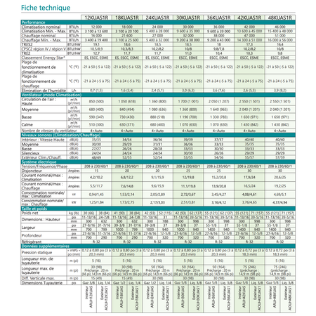 Avec un débit d’air pouvant atteindre 1 618 CFM, cette thermopompe est parfaitement adaptée aux surfaces résidentielles moyennes à grandes. Lors de plusieurs installations réalisées par AirGreen sur la Rive Sud, ce débit a permis d’alimenter efficacement des aires ouvertes combinant salon, cuisine et salle à manger, tout en maintenant des températures stables dans les chambres éloignées du plénum principal.