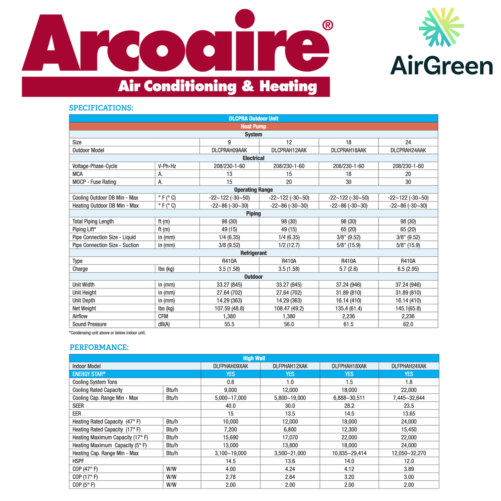 Chez AirGreen, basée à Montréal, nous sommes fiers de vous présenter la Thermopompe Murale ARCOAIRE DELUXE, une solution innovante et efficace pour votre confort thermique à Montréal, Laval, Longueuil, ainsi que sur la Rive-Nord et la Rive-Sud. Cette thermopompe murale n'est pas seulement un appareil de chauffage et de climatisation : c'est une promesse de confort, d'économie d'énergie et de fiabilité.