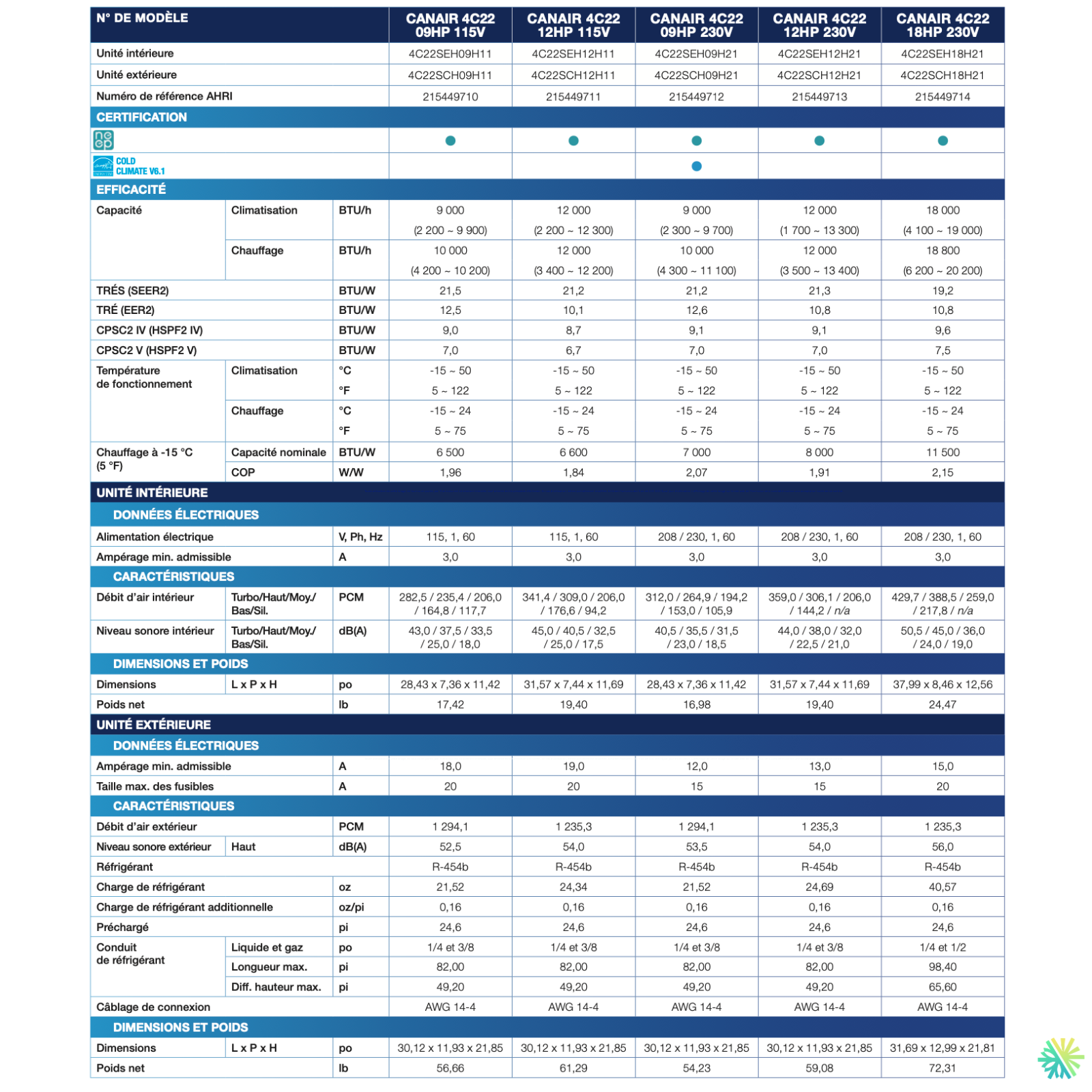 Et ce n’est pas tout : grâce à son efficacité énergétique exceptionnelle, la CANAIR 4C22 vous permet de réduire vos coûts d’électricité tout en profitant d’un confort supérieur. Vous contribuez ainsi à un Québec plus vert, tout en augmentant la valeur et l’efficacité énergétique de votre maison.