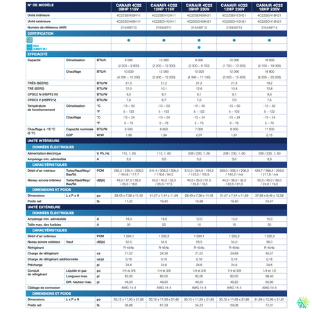 Le climat du Québec, avec ses hivers rigoureux et ses étés humides, exige des appareils CVAC capables de s’adapter à de fortes variations de température. La CANAIR 4C22 relève ce défi avec brio.