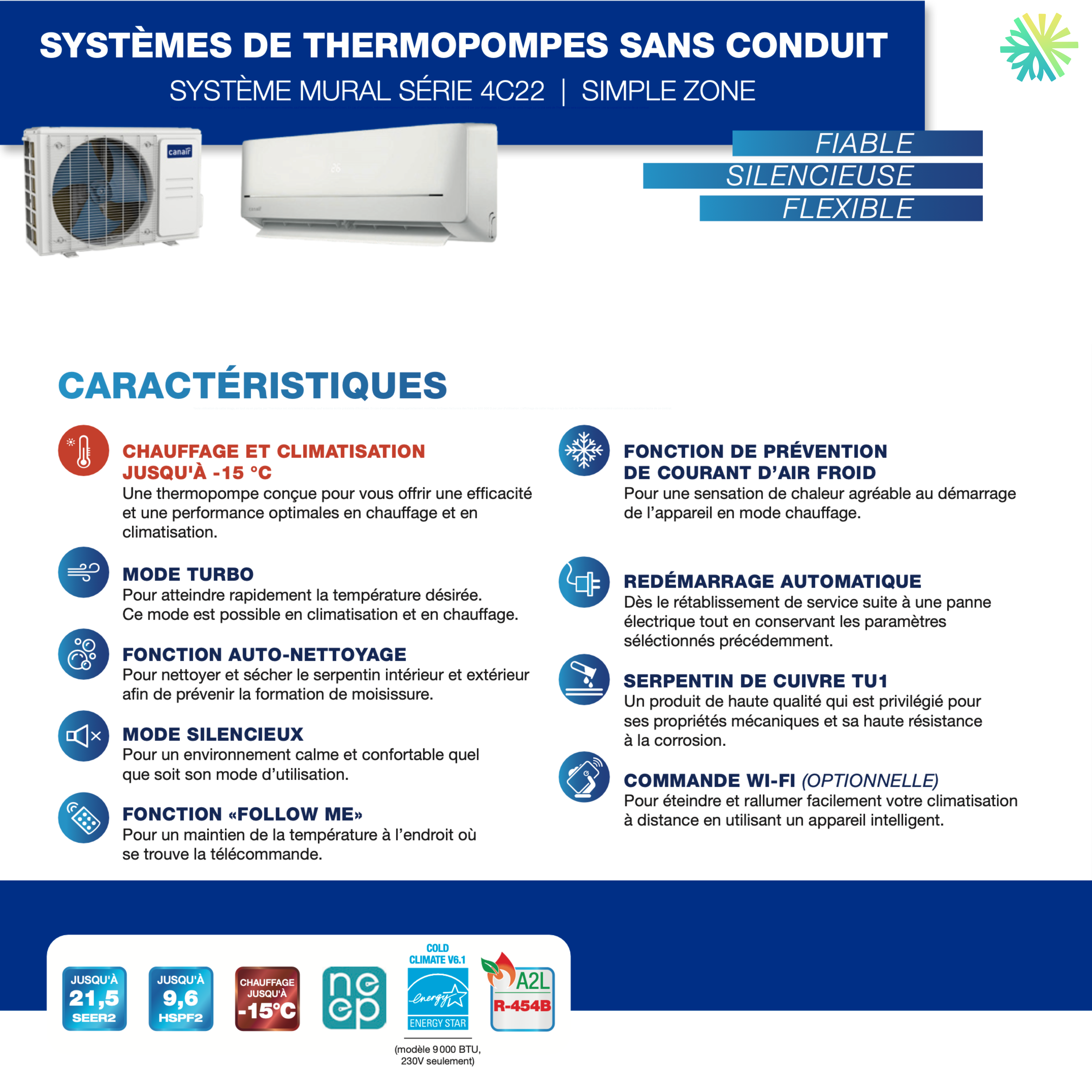Thermopompe Murale CANAIR 4C22 | 18 000 BTU - R454B - 220V | Montréal