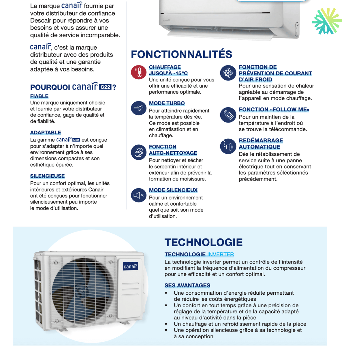 Thermopompe Murale CanAir C22 | 24 000 BTU | Montréal, Laval, Longueuil, Rive Nord & Rive Sud