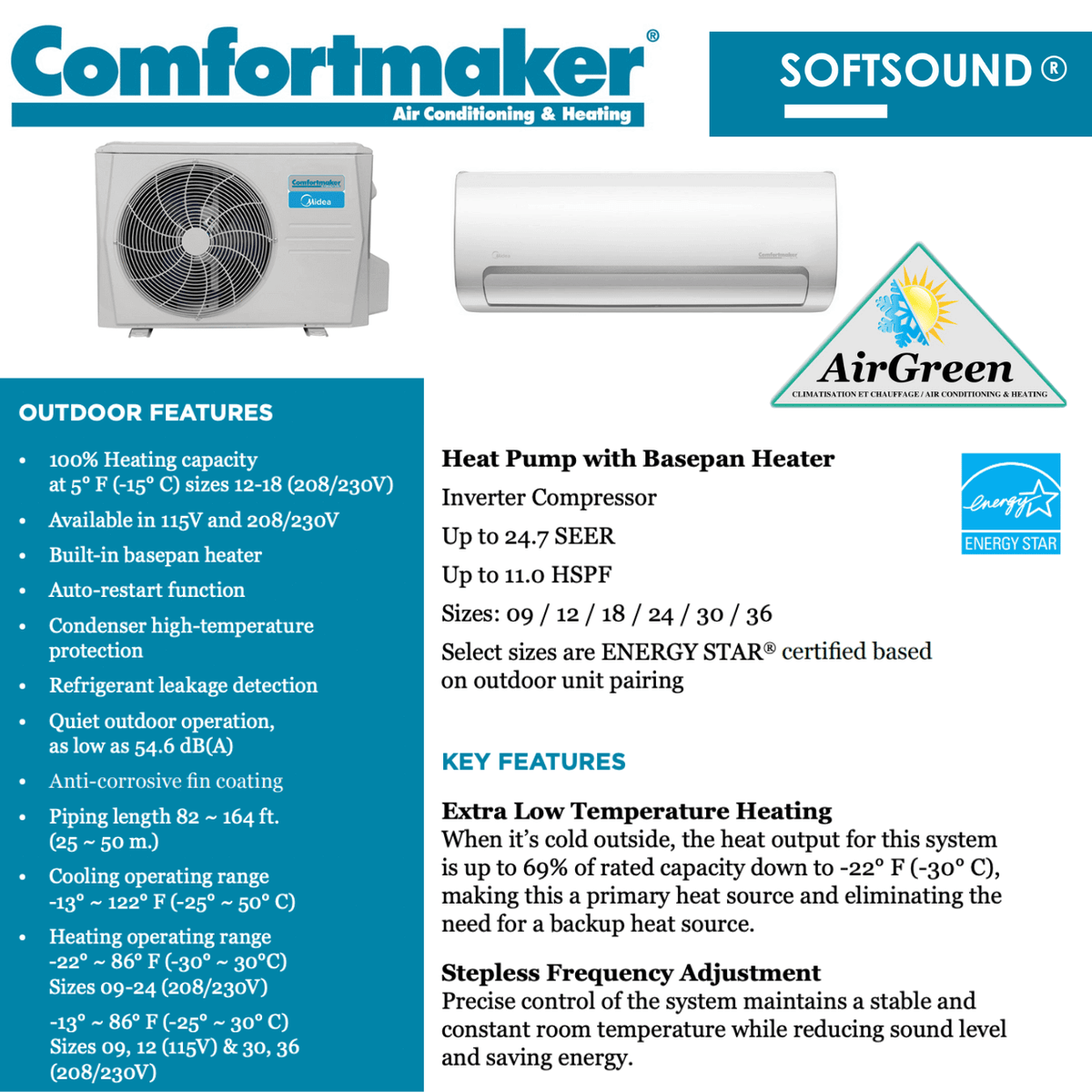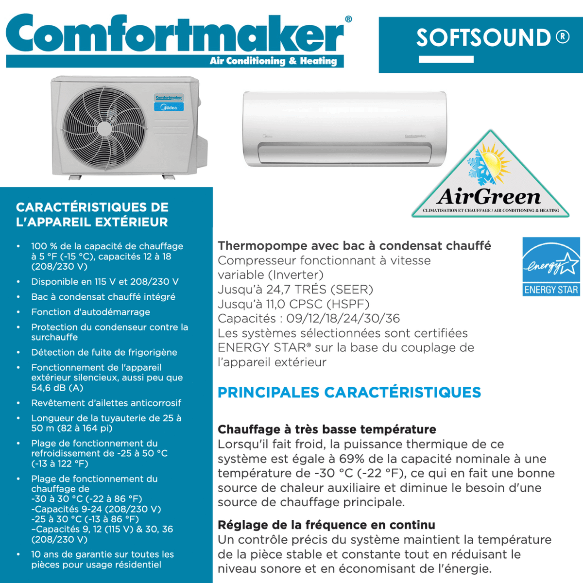 Thermopompe Murale Comfortmaker (DLCSRA) SOFTSOUND de 12 000 BTU Montréal (-30°C)