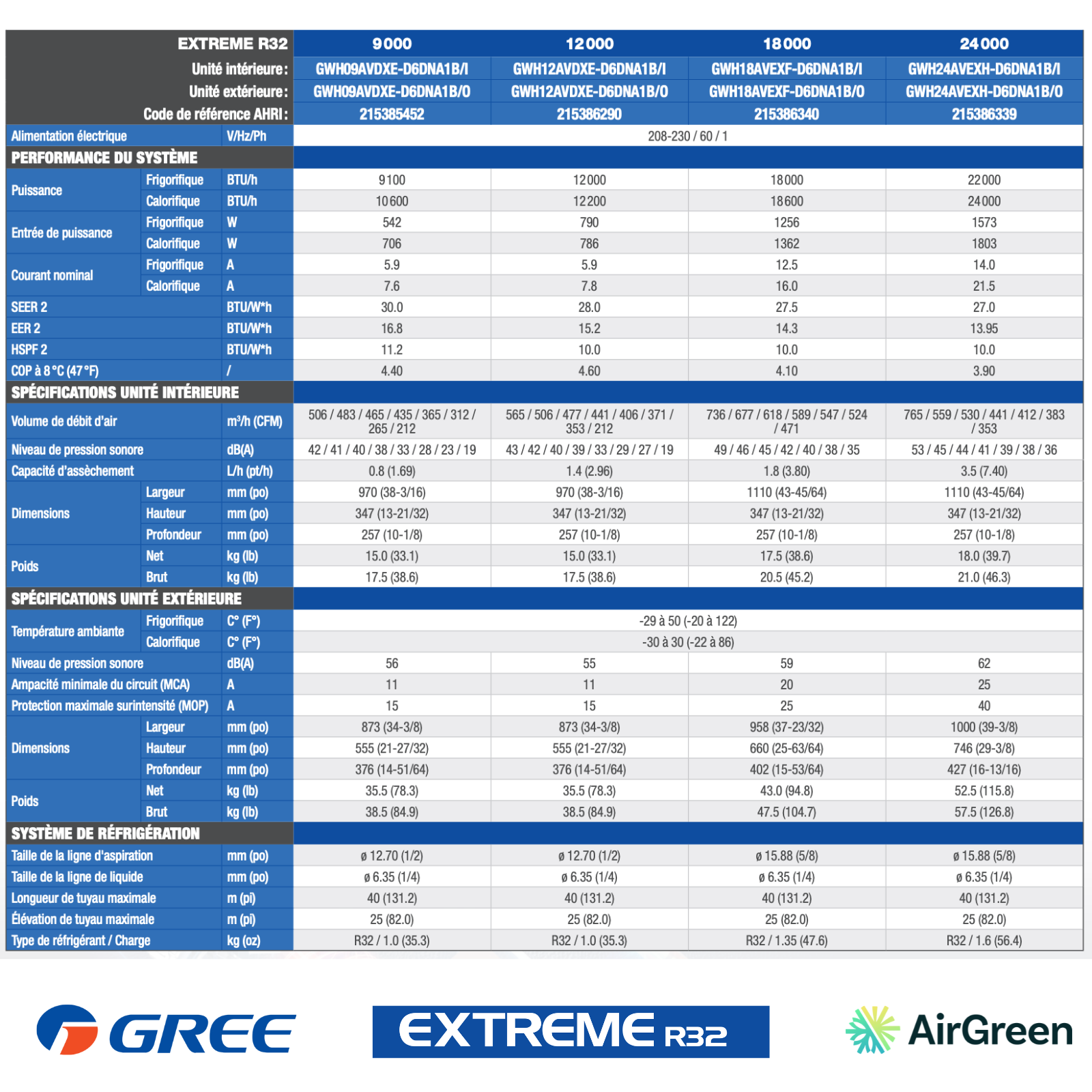 Grâce à ces spécifications, la Gree Extrême R32 s’adapte à de nombreuses configurations architecturales, qu’il s’agisse d’une maison de ville à Longueuil, d’un condo moderne au centre-ville de Montréal ou d’un duplex sur la Rive Nord.