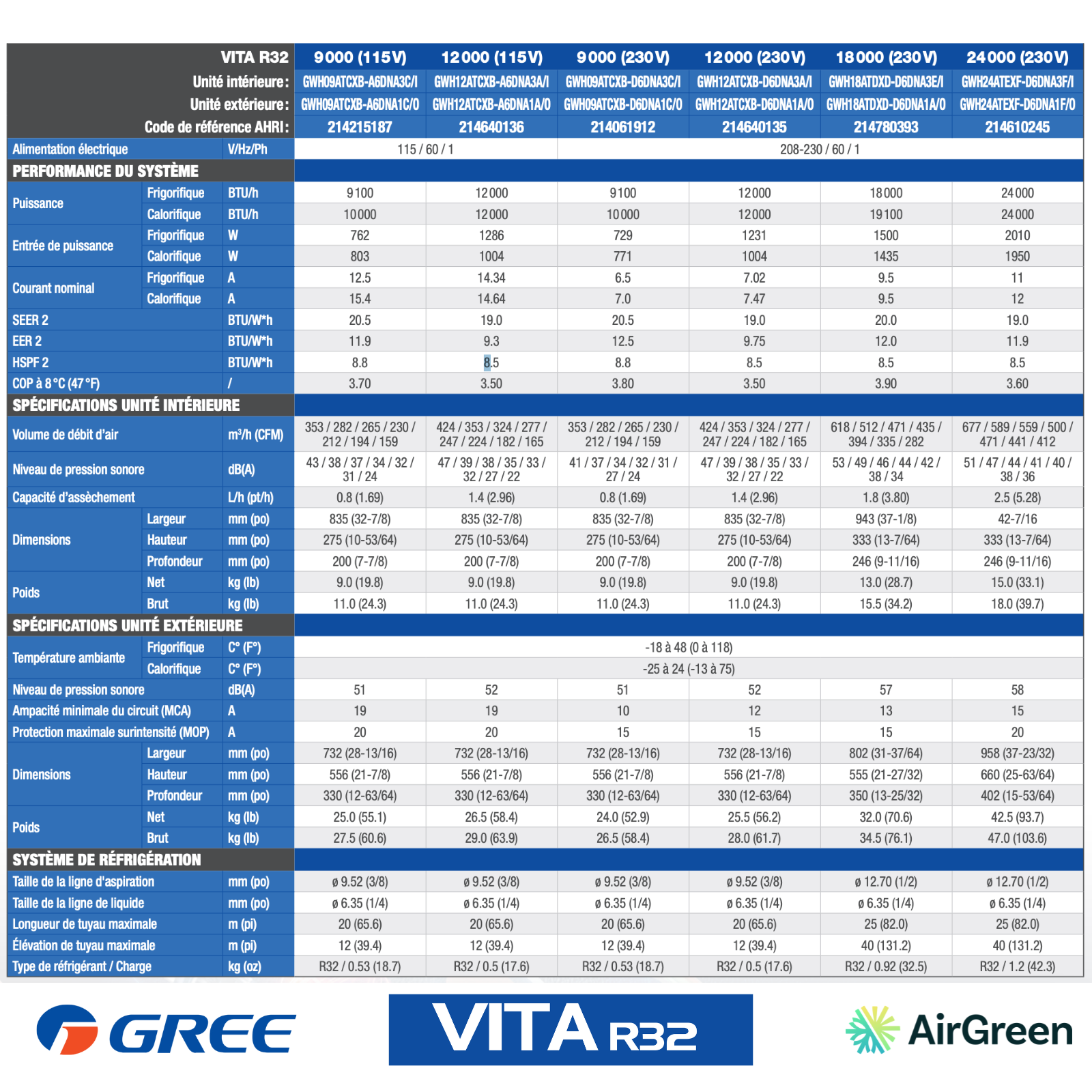La Gree Vita R32 combine des spécifications solides et une conception moderne pour un usage résidentiel. Voici ses éléments clés :
