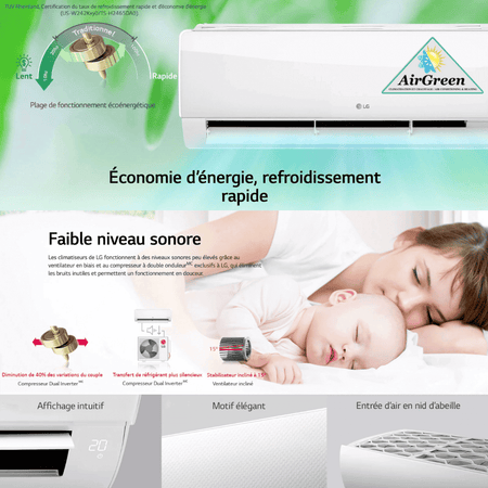 La conception des climatiseurs de LG est d'une élégance incomparable! Ne le considérez pas uniquement comme une thermopompe murale, mais également comme un objet qui illuminera votre pièce, avec un affichage intuitif, un motif élégant en relief et une entrée en nid d’abeille sur l’unité intérieure.