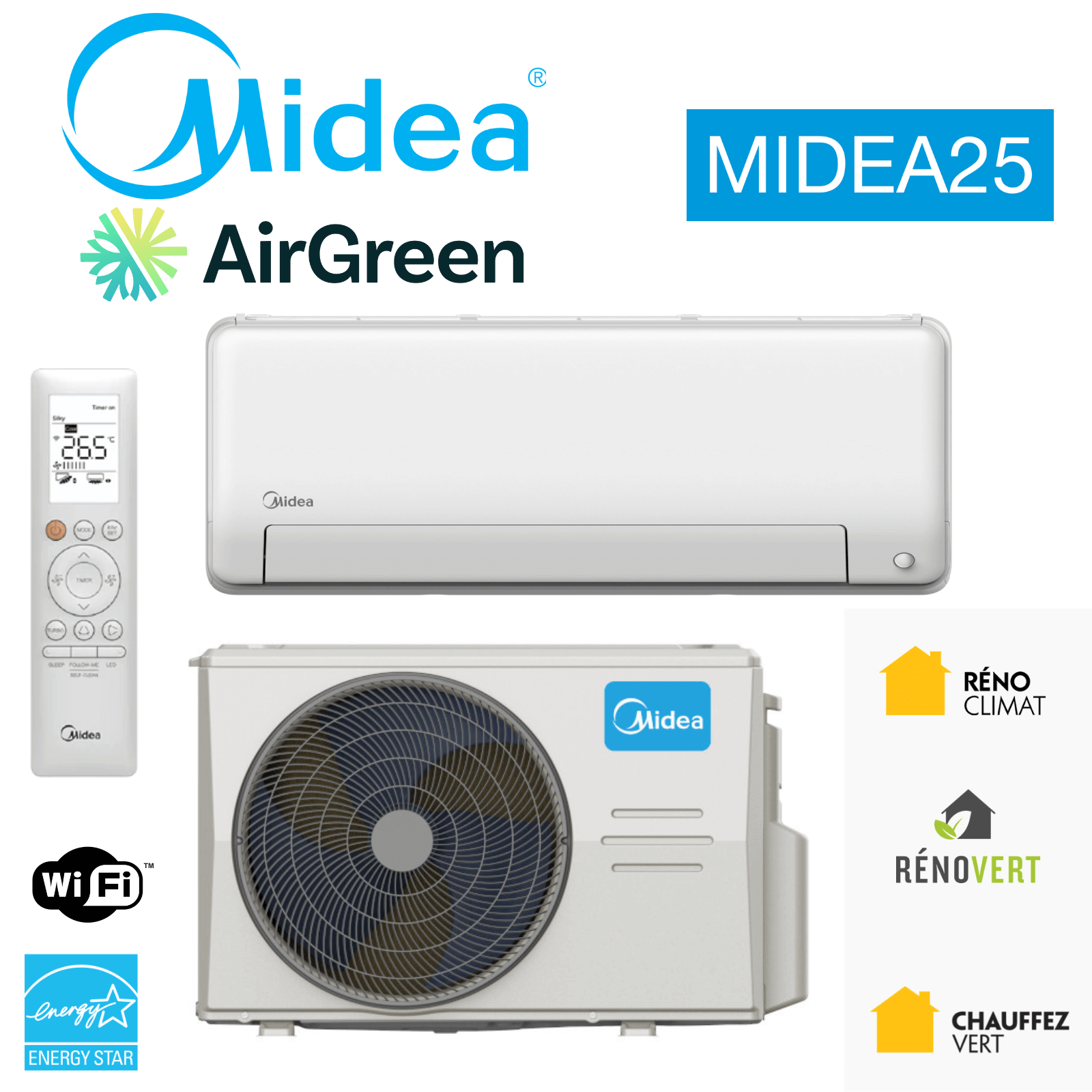 Si vous êtes situé à Montréal, sur la Rive Sud ou la Rive Nord, et cherchez une solution de chauffage et climatisation murale compacte, la MIDEA25 est un excellent choix. Contactez AirGreen dès aujourd’hui pour une estimation gratuite, une installation professionnelle, et un service client hors pair.