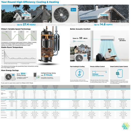Ces données montrent que la thermopompe murale MIDEA25 est idéale pour les petits logements, les bureaux ou les espaces secondaires nécessitant un climat confortable sans coûts élevés en énergie.