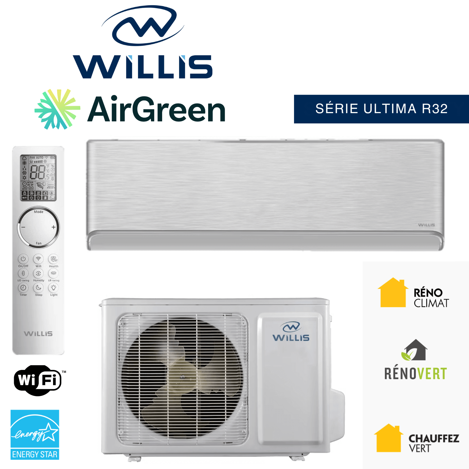 La Thermopompe Murale WILLIS ULTIMA R32 | 12 000 BTU est bien plus qu’un simple appareil de chauffage et de climatisation. C’est une solution complète et durable qui :