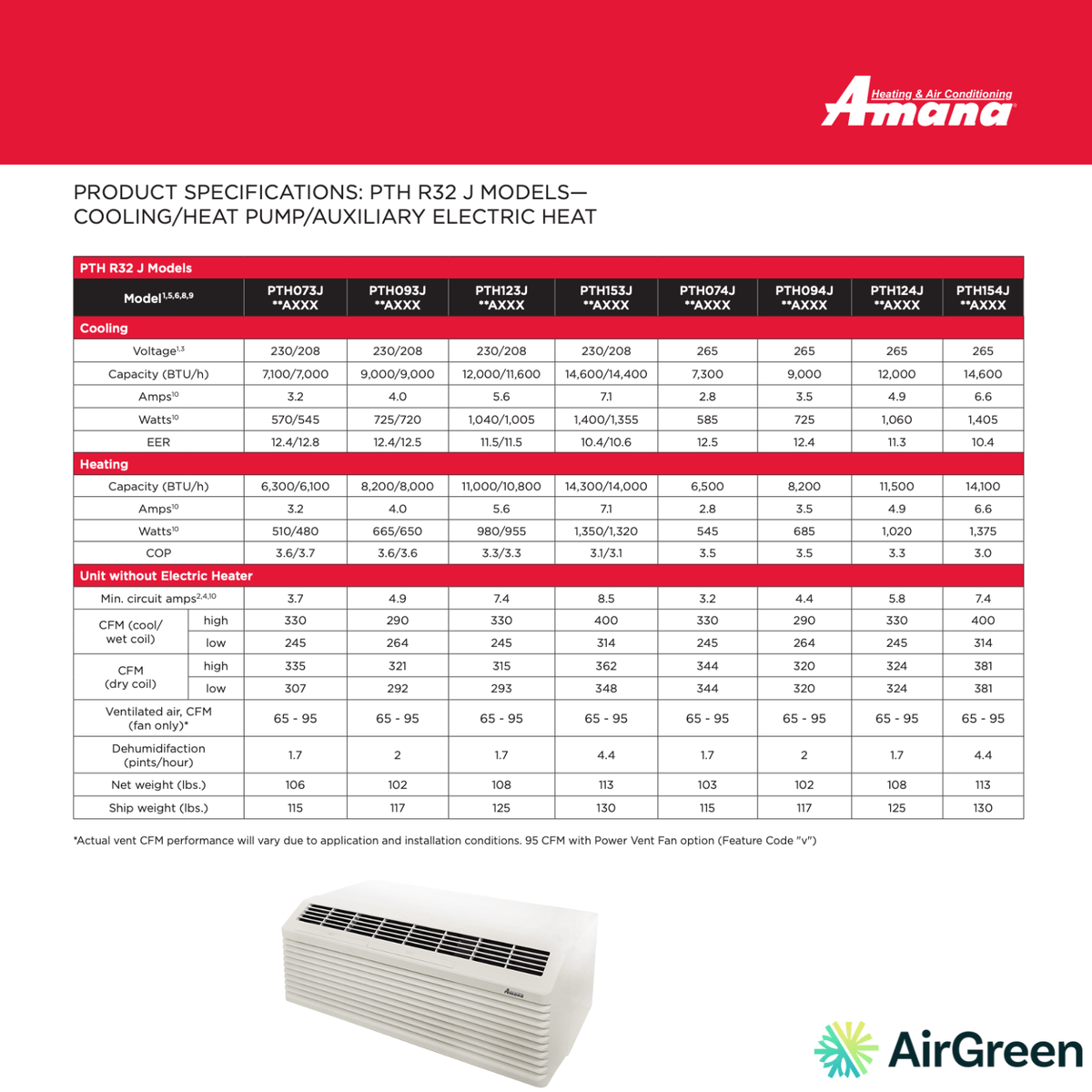 Thermopompe PTAC AMANA PTH R32 J | 9 000 BTU | Grand Montréal