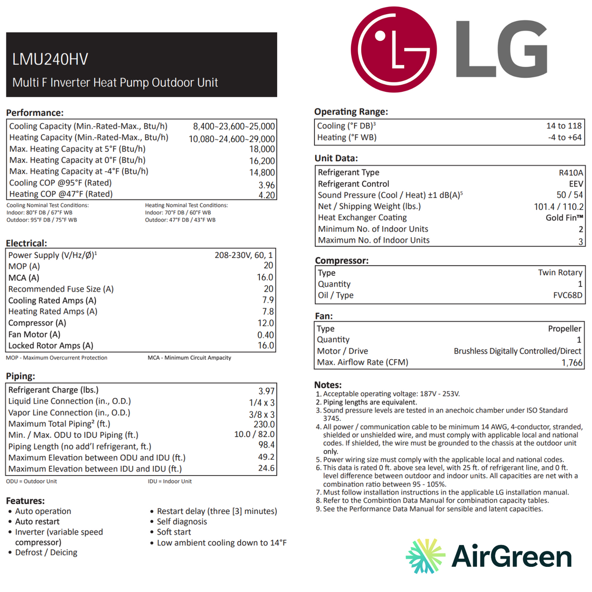 Thermopompe Triple Zone LG MULTI F | Compresseur 24 000 BTU | Montréal, Laval, Longueuil, Rive Sud et Rive Nord