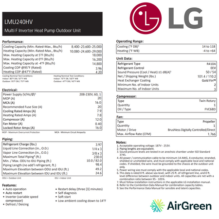 Chez AirGreen, notre mission est de fournir des solutions de climatisation et de chauffage adaptées aux besoins de nos clients à Montréal, Laval, Longueuil, ainsi que sur la Rive Sud et la Rive Nord. Nous sommes fiers de présenter la Thermopompe Triple Zone LG MULTI F, une solution avant-gardiste conçue pour offrir confort et efficacité énergétique dans votre foyer.