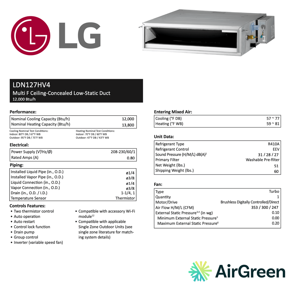 Ventilateur de gaine à basse pression statique LG | 12 000 BTU